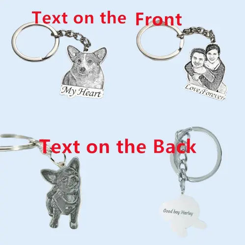Custom Silver Pet Memorial Keychain - Personalized Engraved Dog Portrait Keyring | Gift for Pet Lovers
