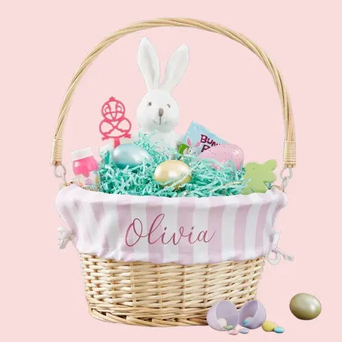 Personalized Easter Basket - Natural Striped Kids Easter Gift with Custom Name