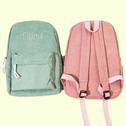 Custom Embroidered Kids Backpack - Personalized Corduroy Book Bag with Name | Unique Birthday Gift for Children