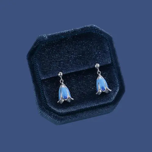 Delicate Bluebell Flower Earrings - Sterling Silver & Enamel Dangle Studs | Spring Floral Jewelry Gift