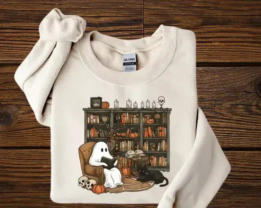 Vintage Ghost Reading Books Sweatshirt - Cute Librarian Halloween Shirt | Teacher Appreciation Gift