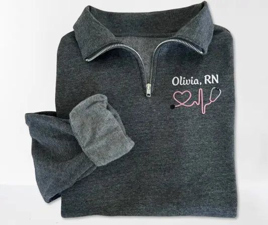 Custom Embroidered Nurse Sweatshirt - Heartbeat Pattern Quarter Zip Jacket for Graduation