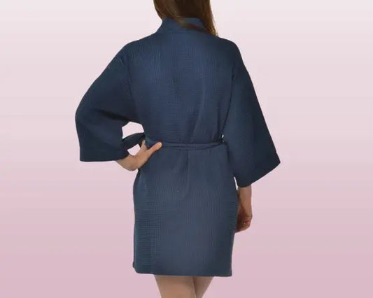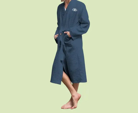 Custom Embroidered Men's Waffle Robe - Personalized Navy Blue Bathrobe | Groomsmen & Best Man Gift