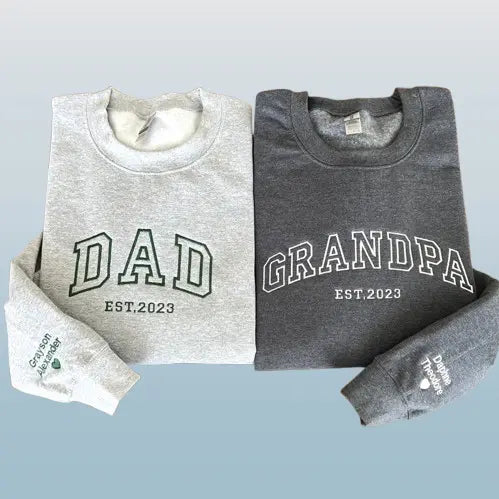 Personalized Dad Sweatshirt - Custom Embroidered Name & Date on Sleeve | Father's Day & New Dad Gift