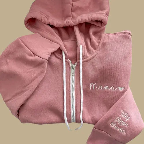 Custom Embroidered Zip-Up Hoodie - Personalized Family Names on Sleeve | Gift for Mom & Grandma