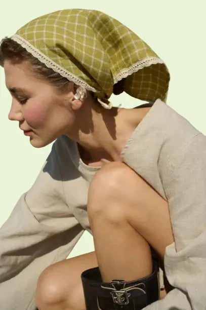 Bohemian Linen Bandana Scarf - Handmade with Cotton Trim, Versatile Headband & Hair Accessory for Women, Natural Fiber Fashion